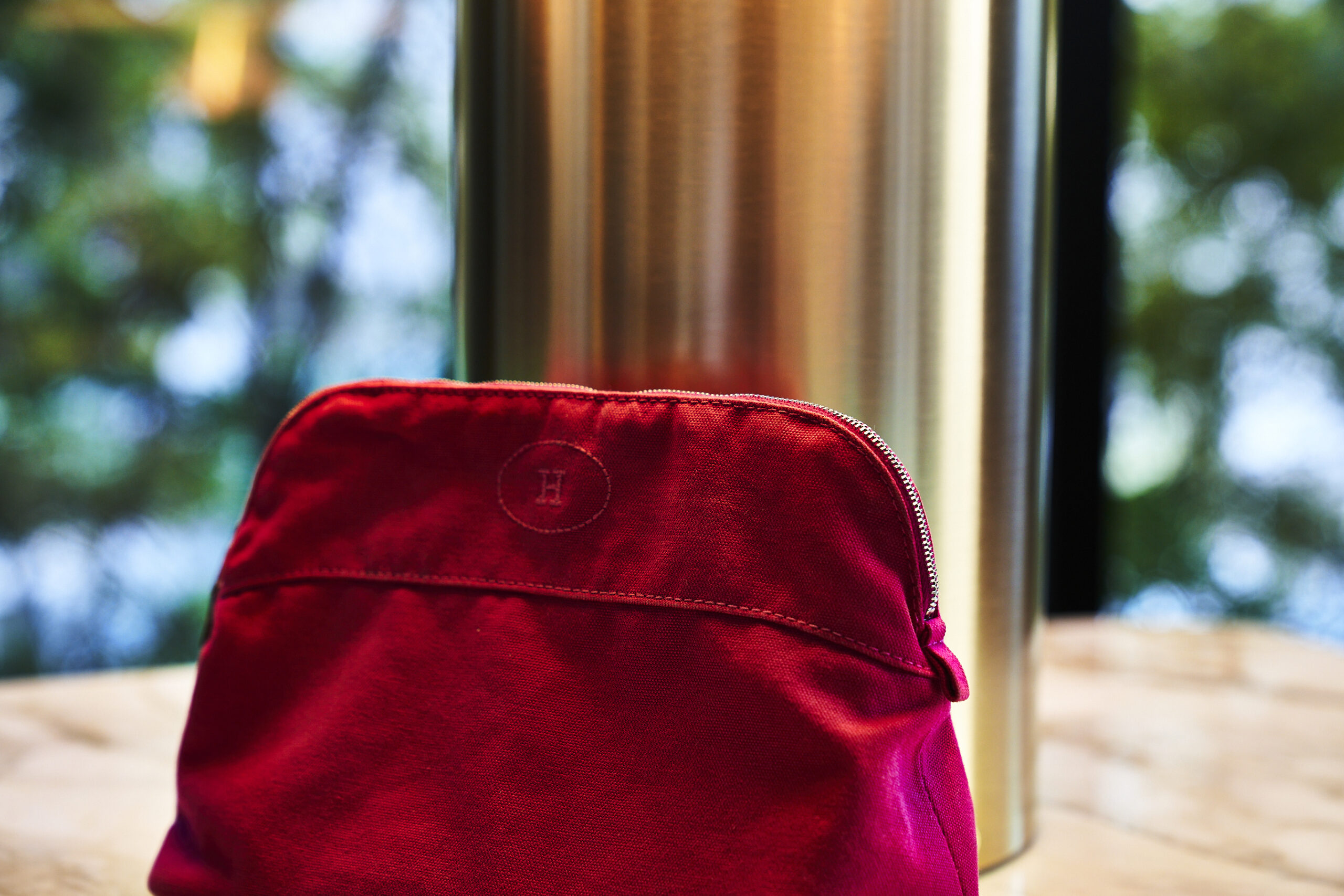 ここで触れておきたいのは、数あるポーチの中でなぜエルメスなのか。ちょうどいいサイズのポーチはいくらでもありますが、ハイブランドのそれはどこか“堅い”。その堅さが正義であるかのように、バッグやトランクの中でスペースをとってしまうのです。では柔らかさを求めると? ナイロンが思い浮かばれますが今度は柔らかすぎるし、かのナイロンで有名なあのブランドのポーチは、意外と被ってしまうことが多かった。そうして行き着いたのが、エルメスでした。意外にもロゴは主張せず、どんなバッグに入れても馴染む。カラバリも豊富で、ラッキーカラーを選べるのもいい。