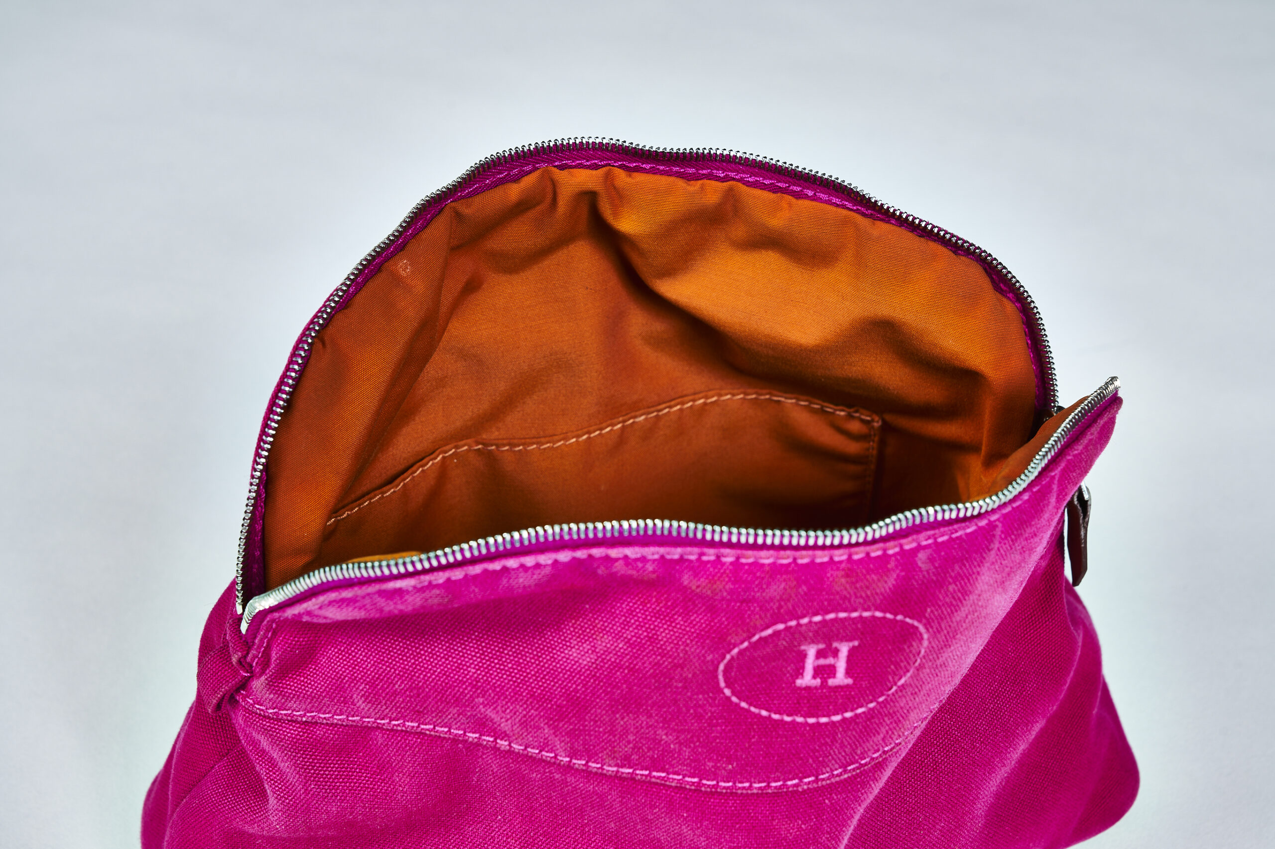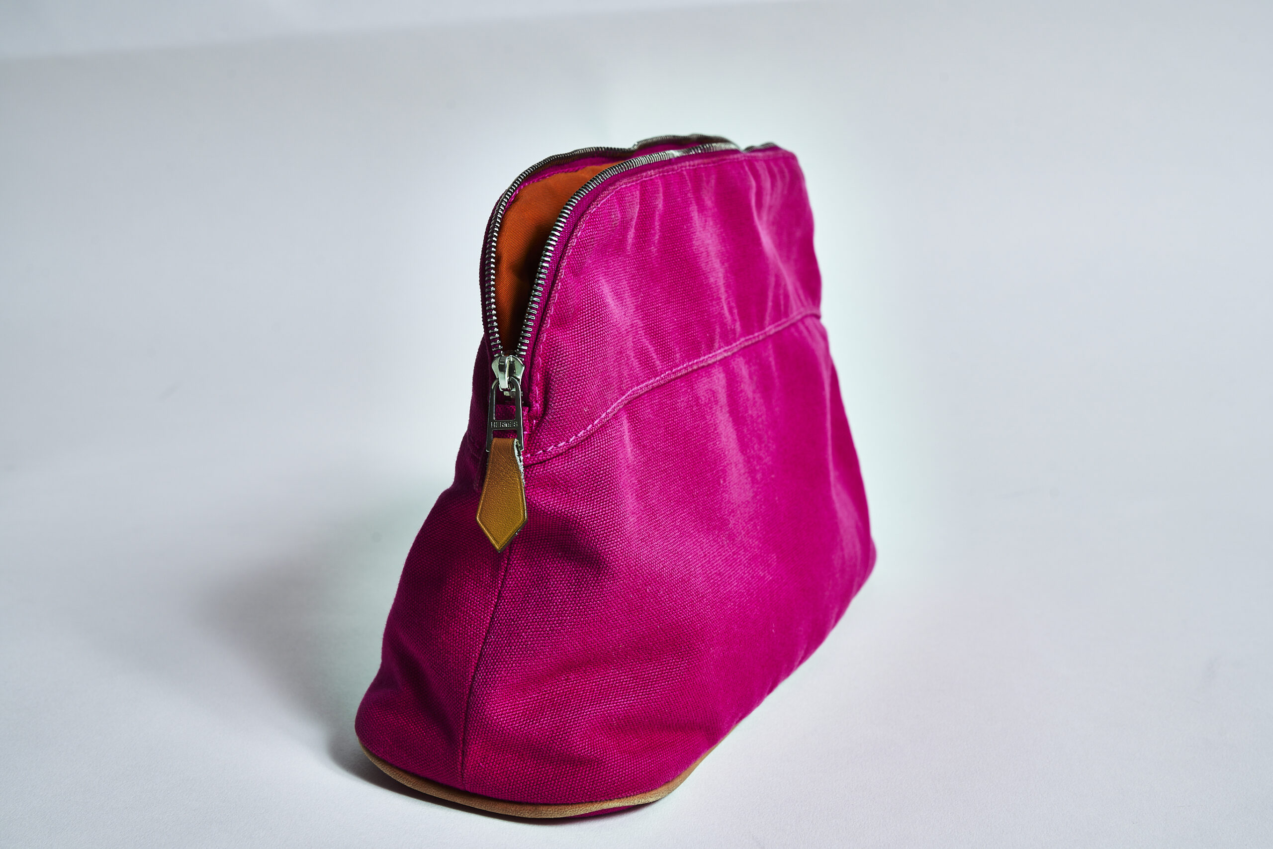 ここで触れておきたいのは、数あるポーチの中でなぜエルメスなのか。ちょうどいいサイズのポーチはいくらでもありますが、ハイブランドのそれはどこか“堅い”。その堅さが正義であるかのように、バッグやトランクの中でスペースをとってしまうのです。では柔らかさを求めると? ナイロンが思い浮かばれますが今度は柔らかすぎるし、かのナイロンで有名なあのブランドのポーチは、意外と被ってしまうことが多かった。そうして行き着いたのが、エルメスでした。意外にもロゴは主張せず、どんなバッグに入れても馴染む。カラバリも豊富で、ラッキーカラーを選べるのもいい。